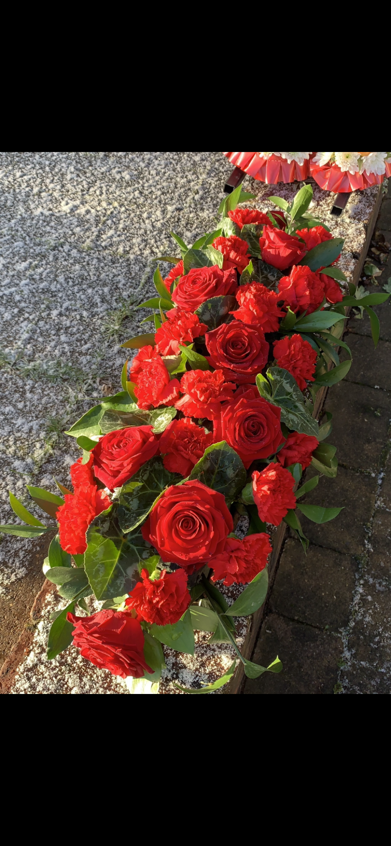 Red rose and Crysanthemum coffin spray